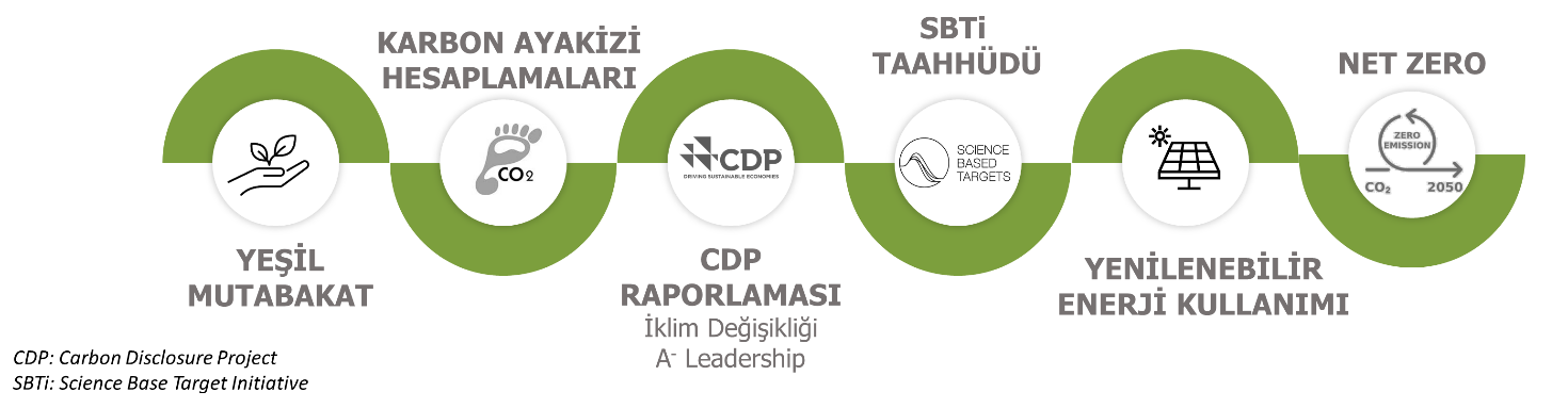 Sera Gazı İzleme Raporlama Tebliği kapsamında, Şirket’in üretim tesisleri düşük emisyonlu tesis statüsünü korumaya devam etmektedir. Enerji verimliliği ve tasarruf projeleri, sera gazı emisyonlarını azaltma çalışmalarına paralel olarak yürütülmektedir.